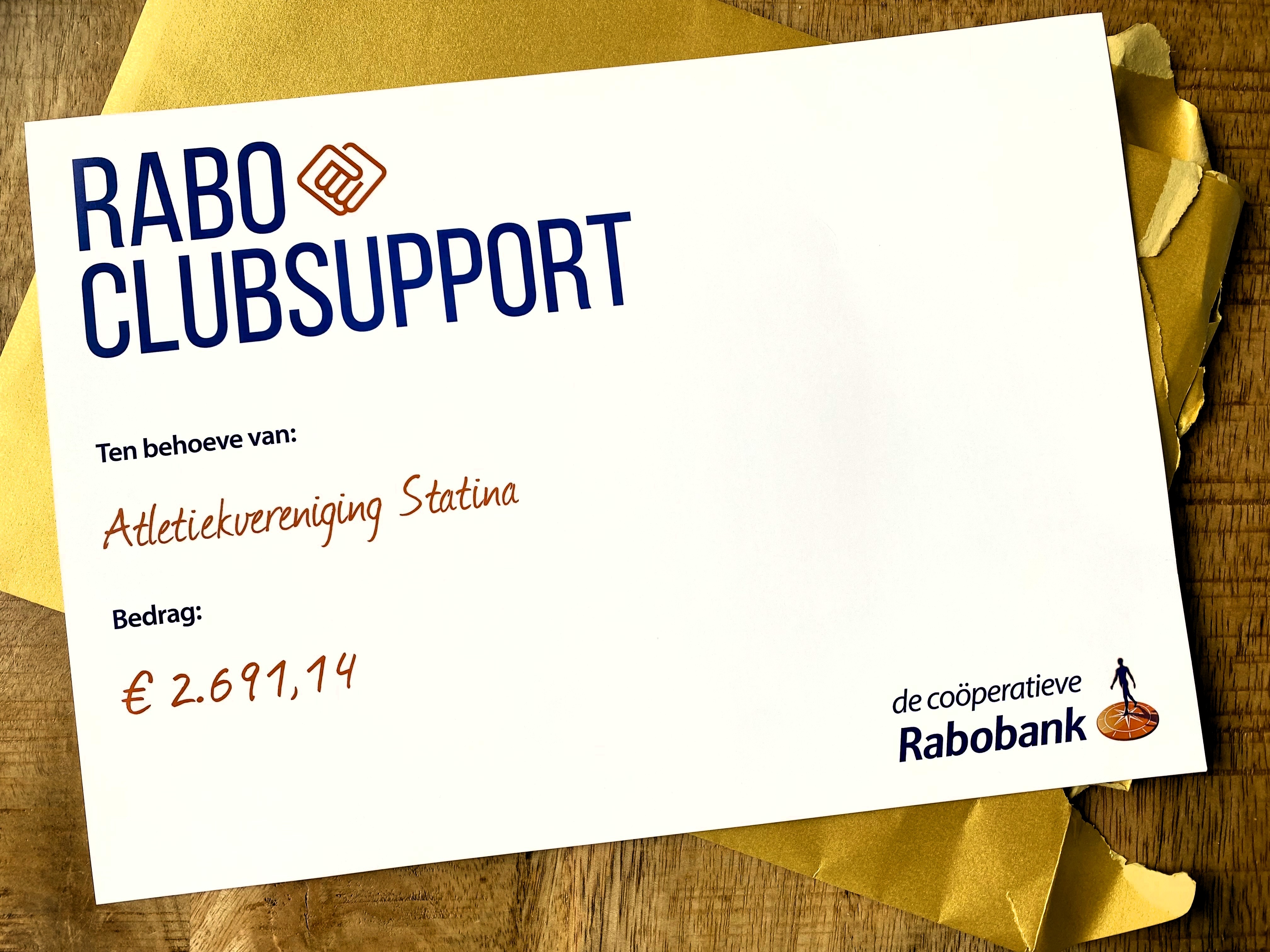 Uitslag en cheque-uitreiking Rabo ClubSupport